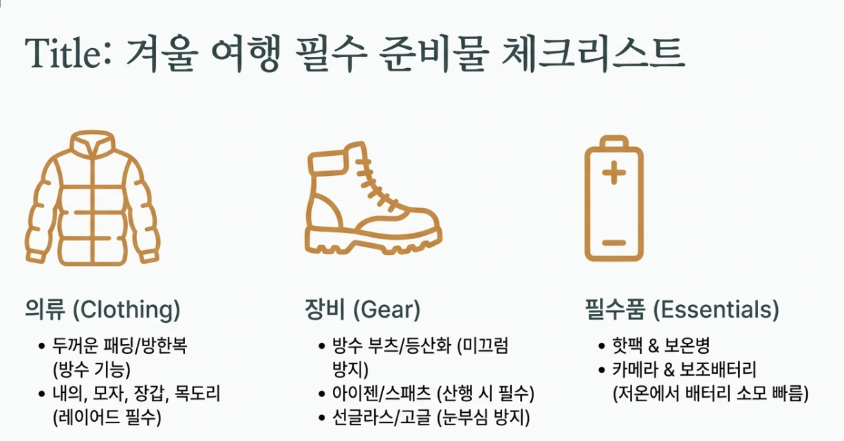 겨울 여행, 이것만은 꼭 챙기세요! 🎒