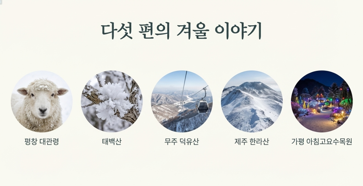 - ✅ 평창 대관령, 태백산, 덕유산, 한라산, 가평 아침고요수목원은 인생샷을 남길 수 있는 최고의 겨울 여행지입니다.