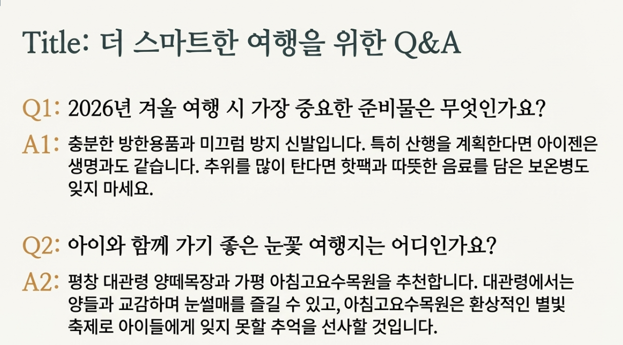 Q1: 2026년 겨울 여행 시 가장 중요한 준비물은 무엇인가요?