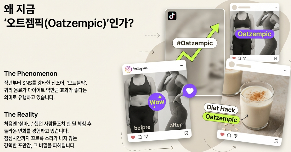 그런데 작년부터 SNS에서 '오트젬픽(Oatzempic)'이라는 말이 유행하더라고요? 귀리 음료가 다이어트 약만큼 효과가 좋다는 말인데, 처음엔 "에이, 설마..." 했죠. 하지만 속는 셈 치고 딱 한 달간 아침을 귀리로 바꿔봤는데, 놀랍게도 점심시간까지 꼬르륵 소리가 안 나는 거예요! 오늘은 제가 직접 경험하고 공부한 귀리의 '찐' 효능과 똑똑하게 먹는 법을 친구에게 말하듯 편하게 알려드릴게요. 😊
