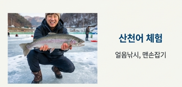 | 얼음 낚시 | 두꺼운 얼음 구멍 사이로 산천어를 낚는 손맛 | 현장 접수 / 예약 접수 구분 운영 |