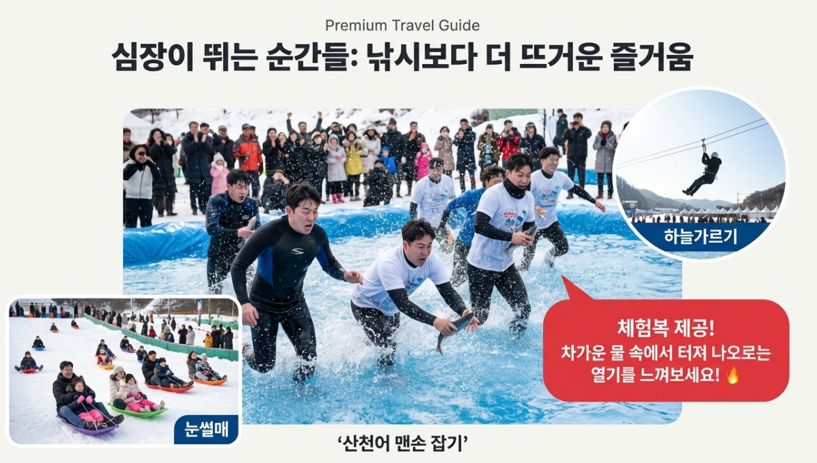단순히 낚시만 하고 오기엔 아쉬움이 남죠? 화천 산천어 축제를 200% 즐기기 위한 관전 포인트를 짚어드립니다.