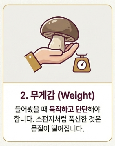 - ✅ 색깔 확인: 갓 표면은 짙은 갈색이나 흑색이더라도, 아랫면(성장면)은 선명한 노란색이어야 신선합니다.