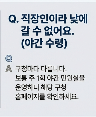 | 구분 | 온라인 신청 (정부24) | 오프라인 방문 (구청) |