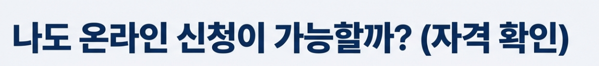 온라인 신청이 정말 편하긴 하지만, 아쉽게도 모든 사람이 할 수 있는 건 아니에요. 괜히 준비했다가 헛수고하지 않도록 자격 조건부터 빠르게 확인해봐요.