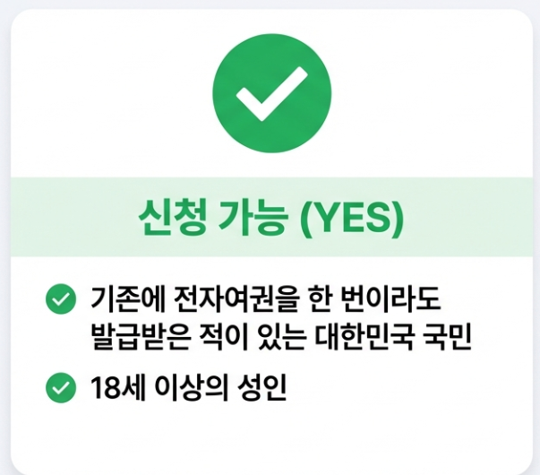 - 기존에 전자여권을 한 번이라도 발급받은 적이 있는 대한민국 국민