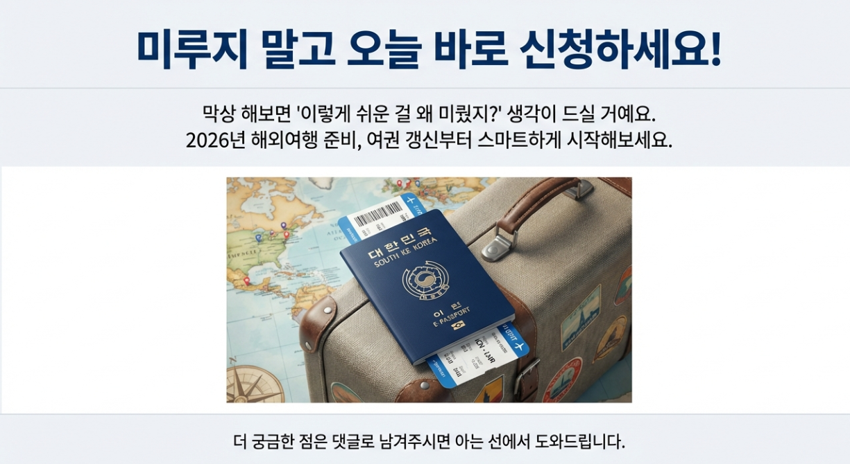 지금까지 여권 재발급 온라인 신청 방법에 대해 알아봤어요. 막상 해보면 "아니, 이렇게 쉬운 걸 왜 그동안 미뤘지?" 싶으실 거예요. 오늘 내용 참고하셔서 반려 없이 한 번에 성공하시길 바랄게요! 더 궁금한 점이나 막히는 부분이 있다면 언제든 댓글로 물어봐주세요. 제가 아는 선에서 최대한 도와드릴게요~ 😊