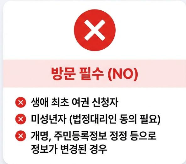 * 생애 최초 여권 신청자는 반드시 방문해야 해요!