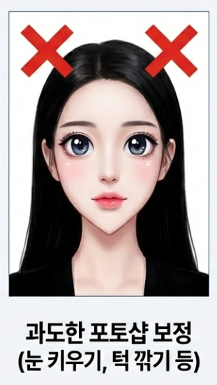- 포토샵으로 눈을 너무 키우거나 턱을 깎은 과보정 사진