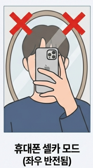 - 휴대폰 셀카 모드로 찍어서 좌우 반전된 사진