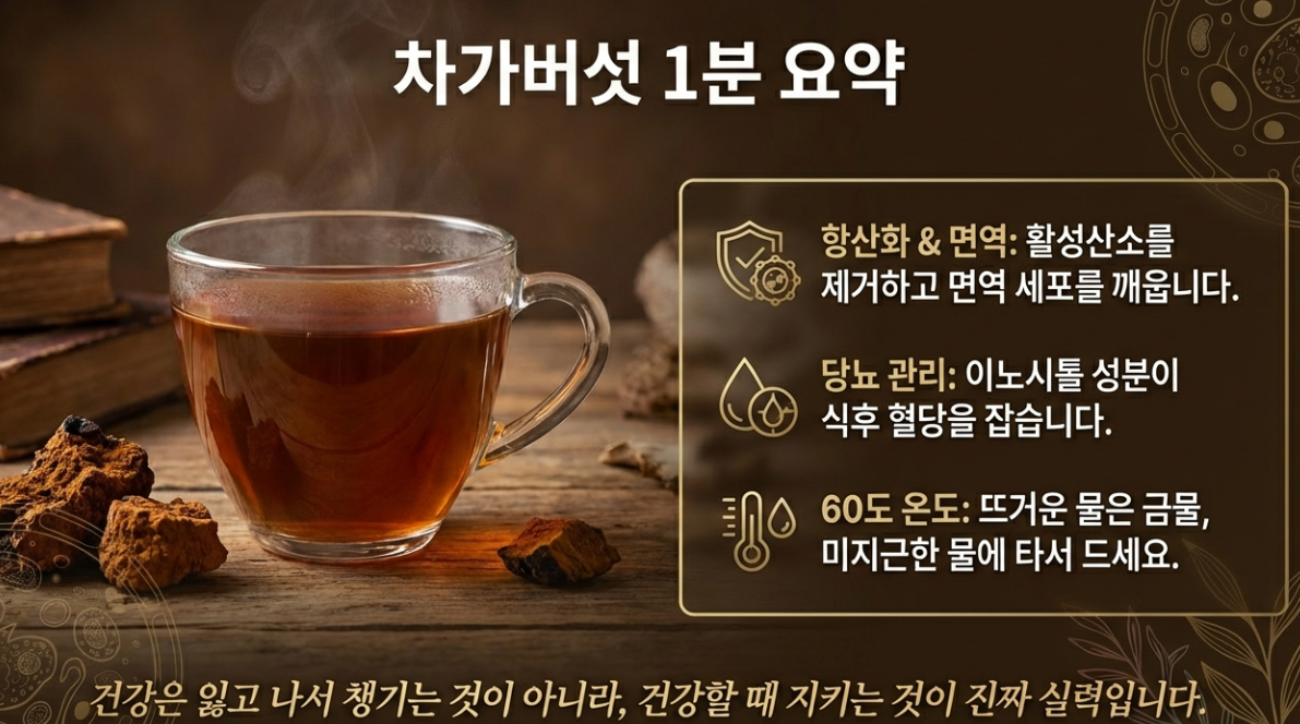 지금까지 자연이 준 선물, 차가버섯에 대해 알아봤어요. 건강은 잃고 나서 챙기는 게 아니라 건강할 때 지키는 게 진짜 실력인 거 아시죠? 😉