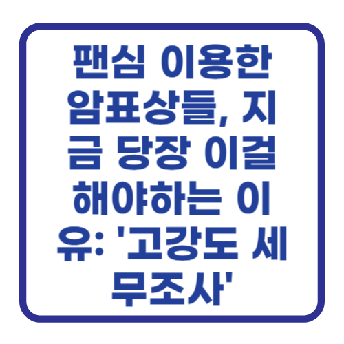 이번 국세청의 세무조사는 단순한 질서 위반을 넘어 국민 개개인의 정당한 권리를 빼앗는 악의적인 행위로 규정하고 시작되었다는 점이 핵심이에요. 암표 거래는 순수한 팬들의 마음을 상업적으로 이용하는 대표적인 민생 침해 사례니까요.