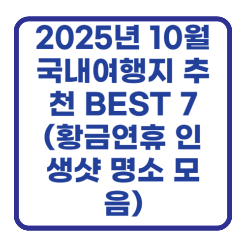 선선한 바람과 따스한 햇살이 완벽한 조화를 이루는 10월! 생각만 해도 설레지 않나요? 😊 특히 올해 10월은 황금연휴까지 있어서 어디론가 훌쩍 떠나기 정말 좋은 시기인 것 같아요. 저도 매년 이맘때면 '어디 가서 인생 사진 남겨볼까?' 하는 행복한 고민에 빠지곤 하는데요. 그래서 오늘은 제가 꼼꼼하게 찾아보고 엄선한, 10월에 가장 아름다운 국내 여행지 BEST 7을 여러분께 소개해 드리려고 합니다!