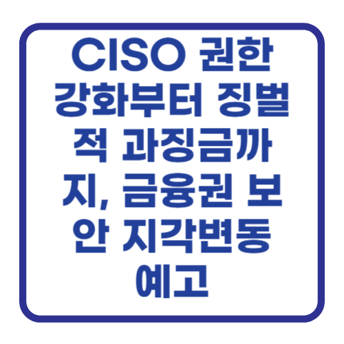 특히 막대한 금융 정보를 다루는 금융권의 보안 실태는 더욱 밀도 높게 점검합니다. 각 금융사 CEO 책임 아래 모든 전산 시스템과 정보 체계를 긴급 점검하고, 금융감독원과 금융보안원이 그 결과를 면밀히 지도·감독할 예정입니다. - 보안 책임자(CISO)에게 힘을!