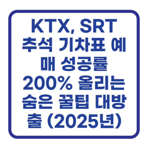 - 사전 준비는 필수!: 예매 전날 부랴부랴 준비하면 늦습니다. 코레일/SRT 회원가입은 미리 해두고, 명절 예매 전용 페이지가 열리면 로그인해서 원하는 날짜, 시간, 구간을 미리 등록해두세요.